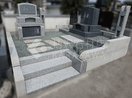 奥行きも広いので手前に敷石を配置しました。- 変型墓地 面積